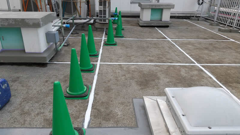 一般防水工事(シート防水・ウレタン防水・アスファルト防水・FRP防水)、シーリング工事、雨漏り調査・補修
